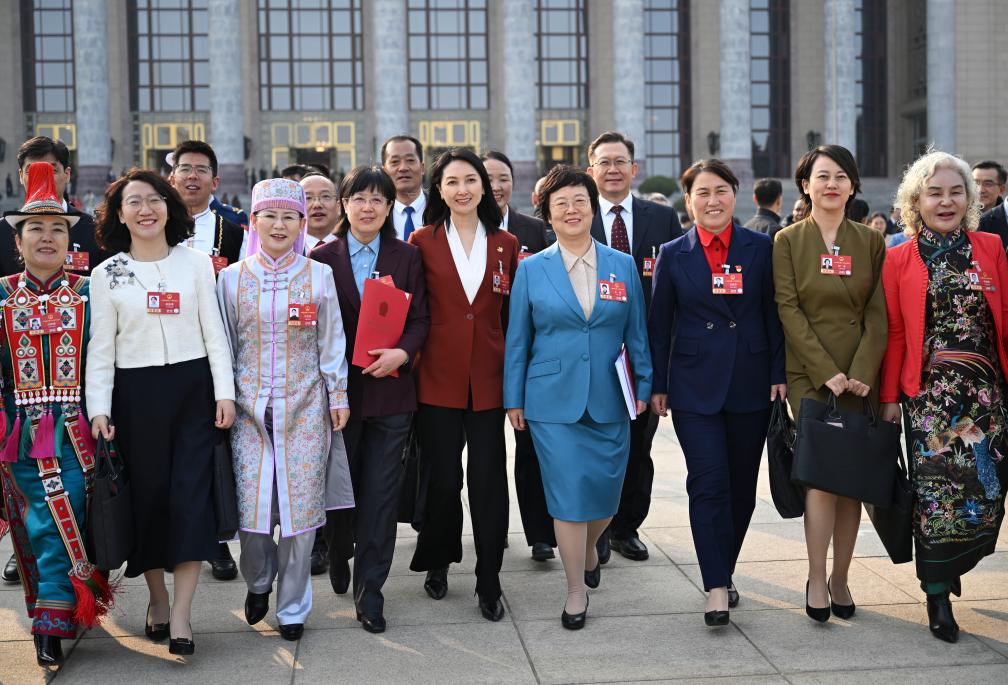 3月12日,第十四届全国人民代表大会第四次会议在北京人民大会堂举行闭幕会。这是闭幕会后,代表们走出人民大会堂。
