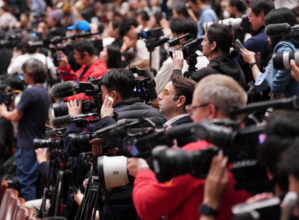 3月12日,第十四届全国人民代表大会第四次会议在北京人民大会堂举行闭幕会。这是记者在闭幕会上采访。