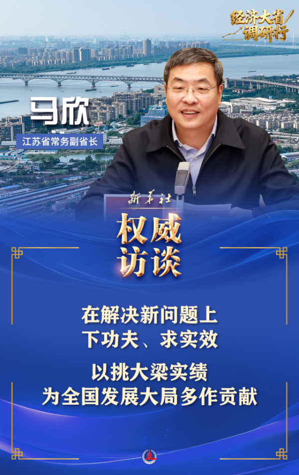 江苏省常务副省长马欣在接受新华社记者专访时表示,江苏将深入贯彻习近平总书记对江苏工作一系列重要讲话重要指示精神,切实在研究新情况、解决新问题上下功夫、出经验,认认真真、扎扎实实抓好“十五五”各项任务落实,以扛好经济大省挑大梁责任的实绩实效,为全国发展大局多作贡献。