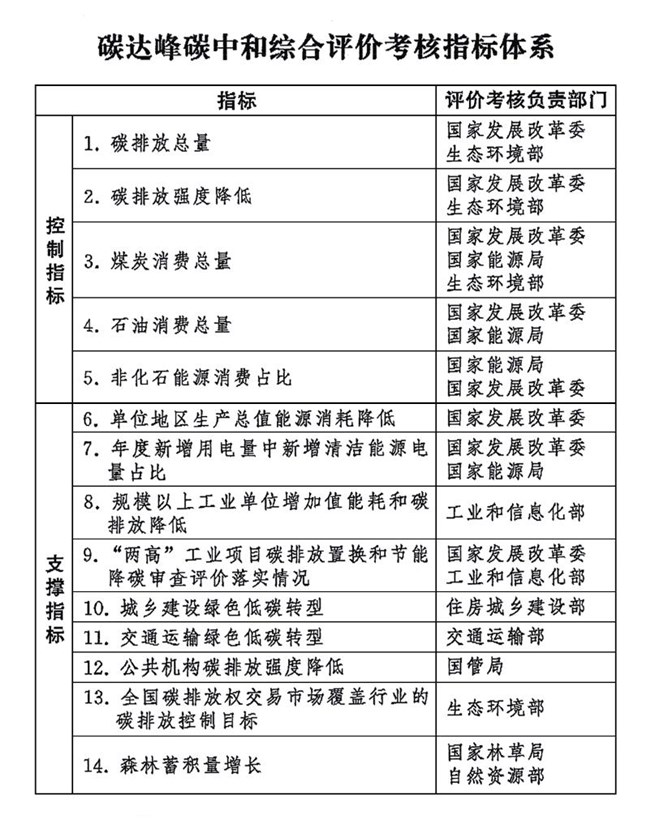 《碳达峰碳中和综合评价考核办法》全文如下。